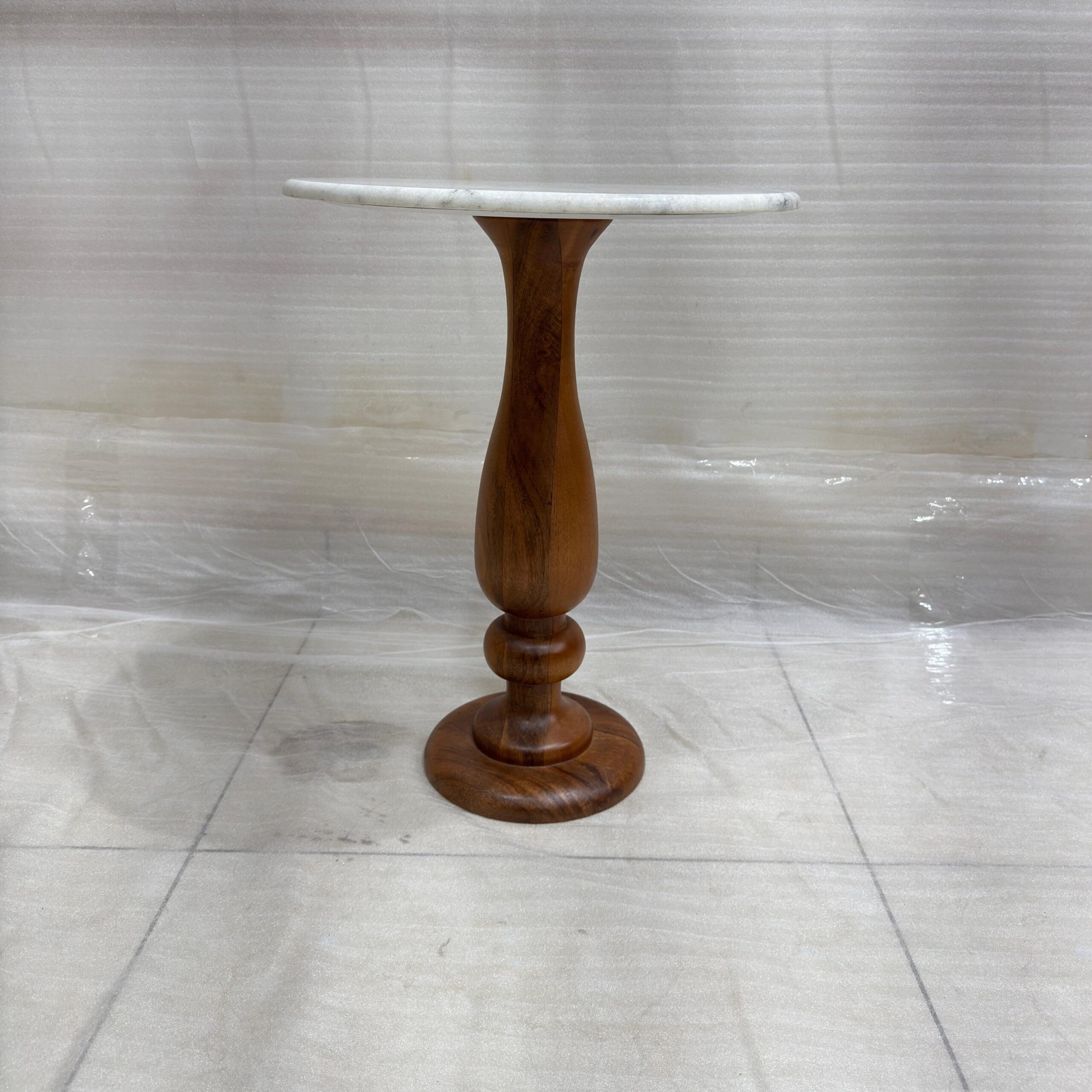 16x16x22.50″ Round Wooden Side Table With Marble Top