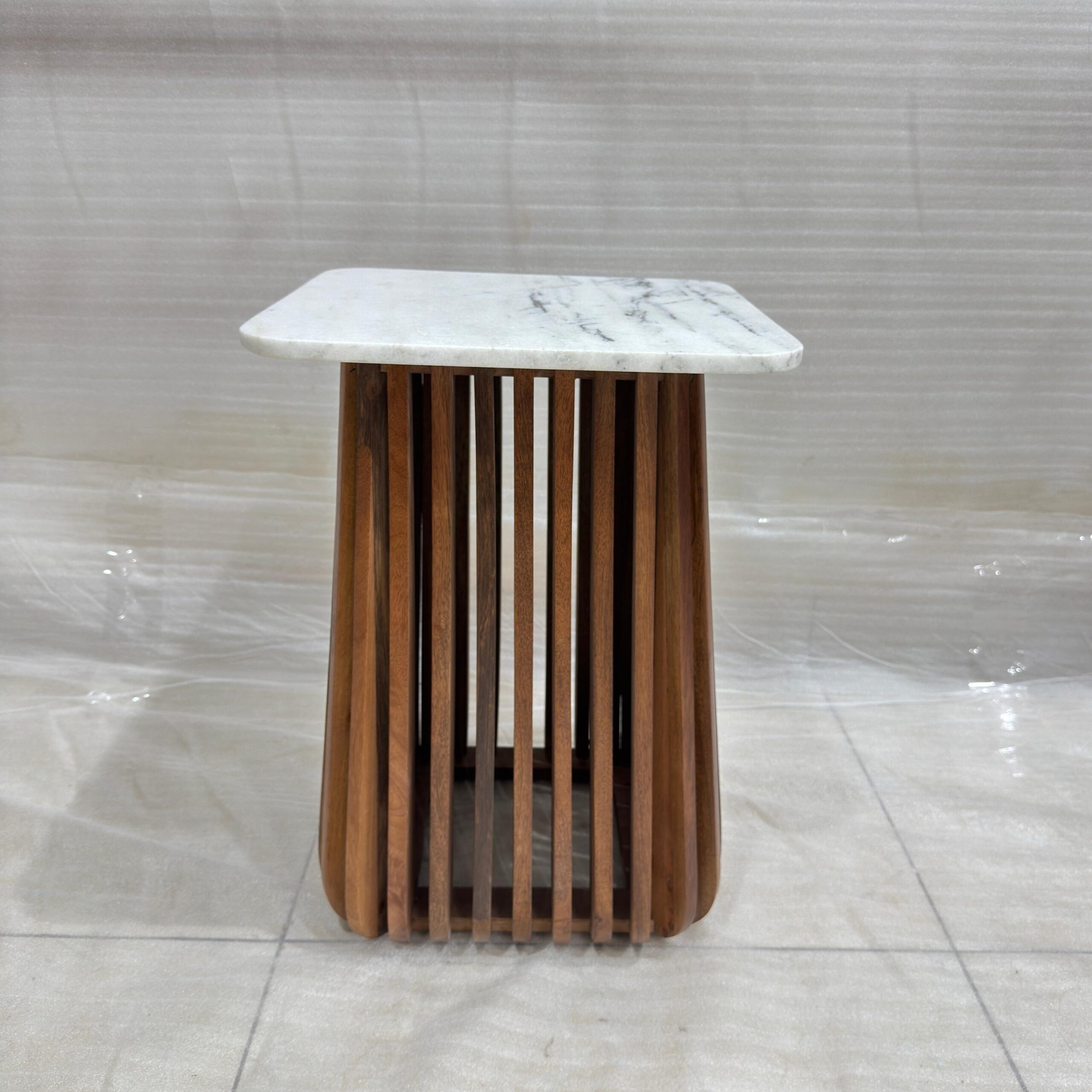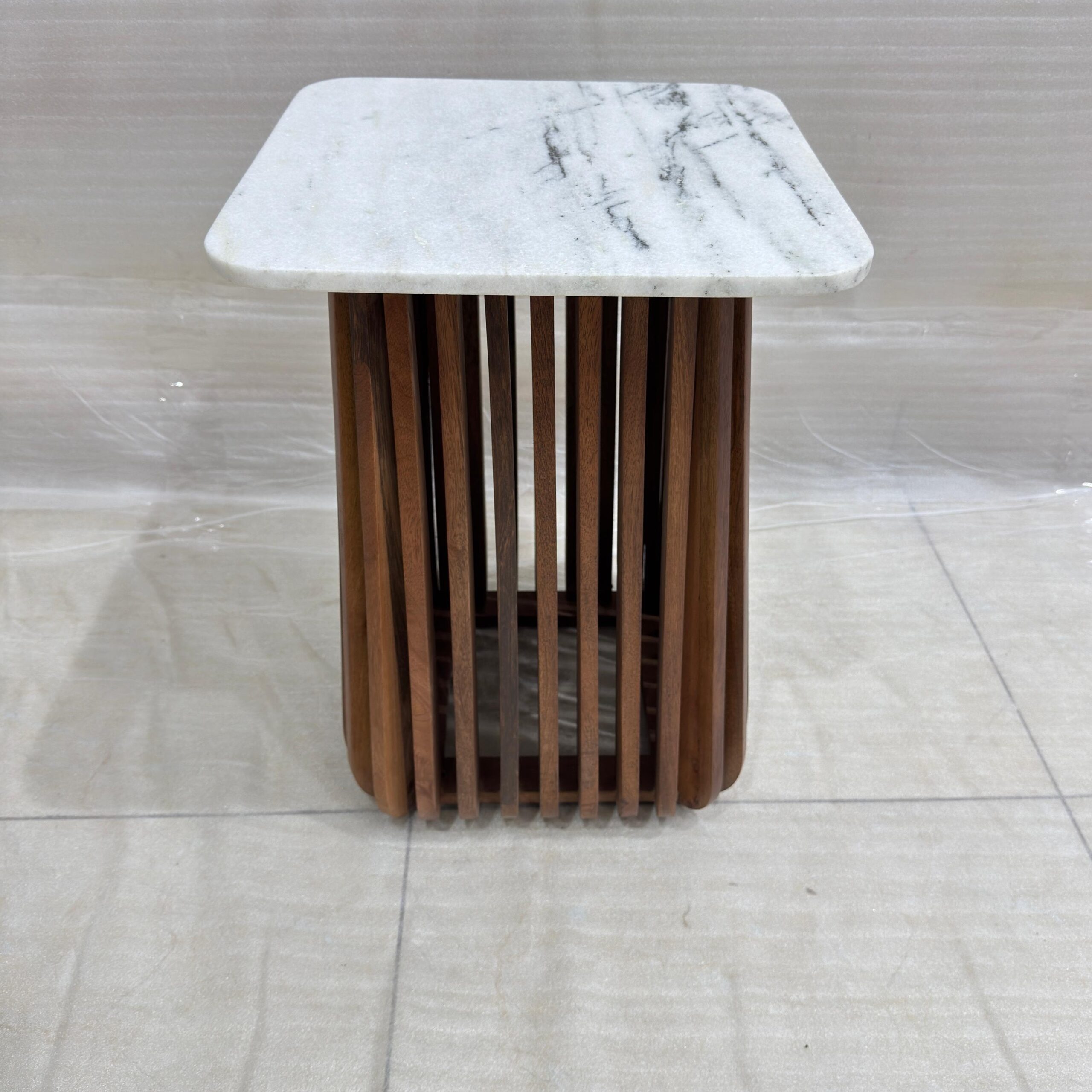 16x16x21.50″ Square Wooden Side Table With Marble Top