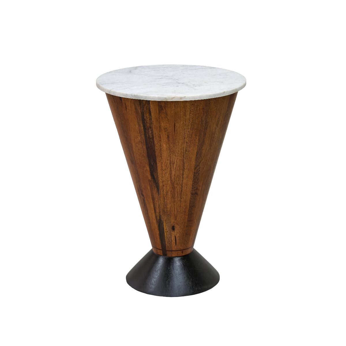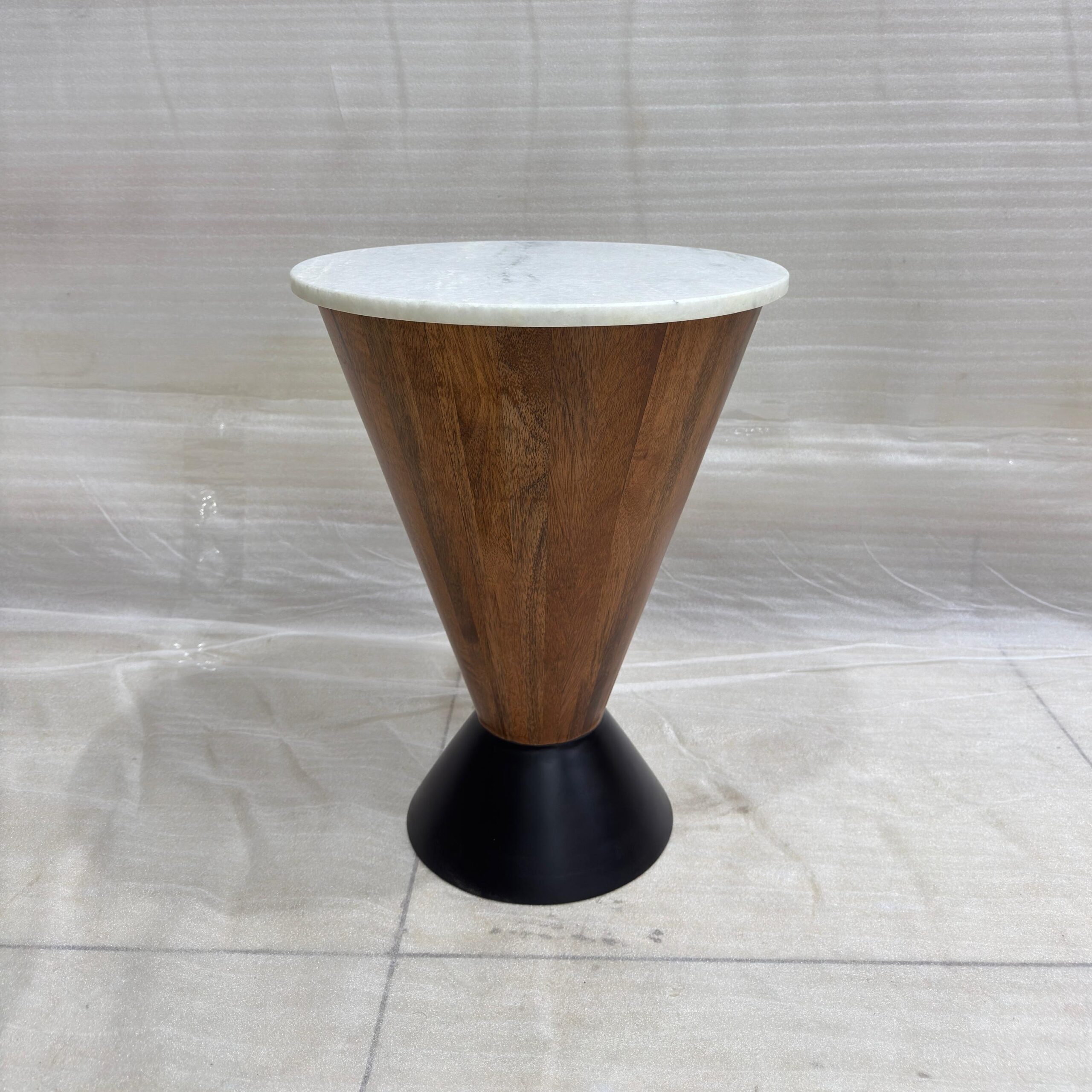 16x16x22 ” Round Wooden Side Table With Marble Top